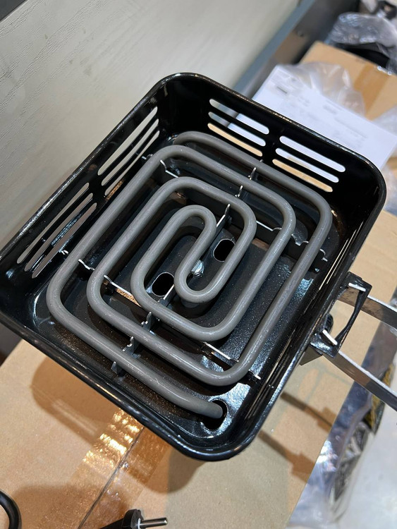 زغالها روی المنت قرار داده شده و دستگاه روشن میشود. المنت برقی حرارت را به طور یکنواخت به زغالها منتقل میکند.